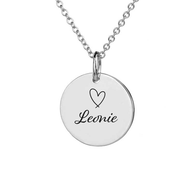 Diese wunderschöne Kette wird dein neuer Begleiter und du hast deinen Lieblingsmenschen immer bei dir. Wir gravieren den Anhänger von Hand mit deinem Wunschnamen sowie einem Herzen. Auf Wunsch gravieren wir auf die Rückseite eine Widmung. So wird diese Kette ein echtes Unikat und der Beschenkte (oder du selbst) wird sich sehr drüber freuen.